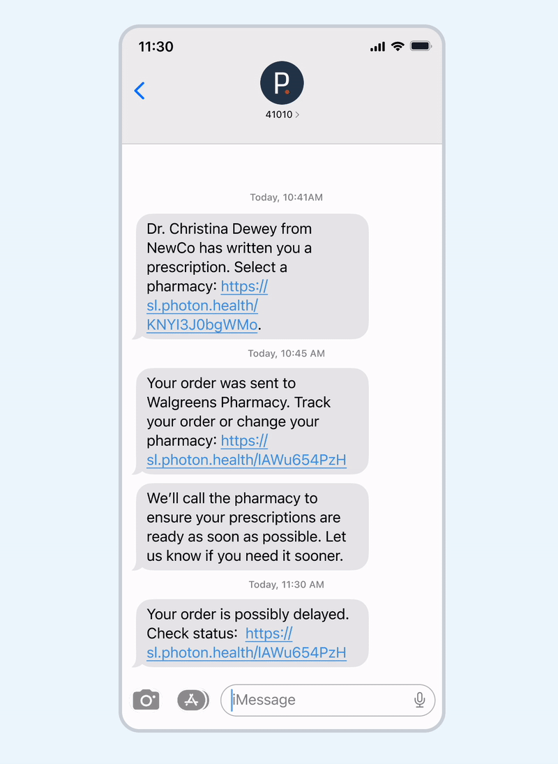 Patients now get prescriptions up to 5x faster. Photon helps patients navigate out of stock pharmacies by rerouting their prescriptions on their own. When a medication is out of stock, patients will know well before arriving at the pharmacy, and won’t need to speak to a provider to get a new prescription.